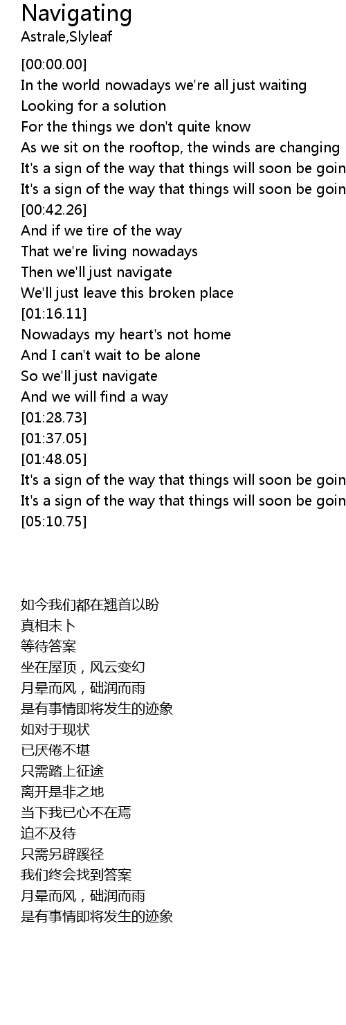 | [00:24.34] | As we sit on the rooftop, the winds are changing |