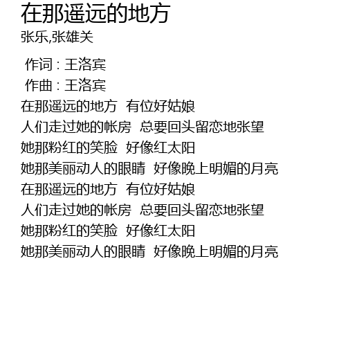 | [00:00.000] | 作词 : 王洛宾 |