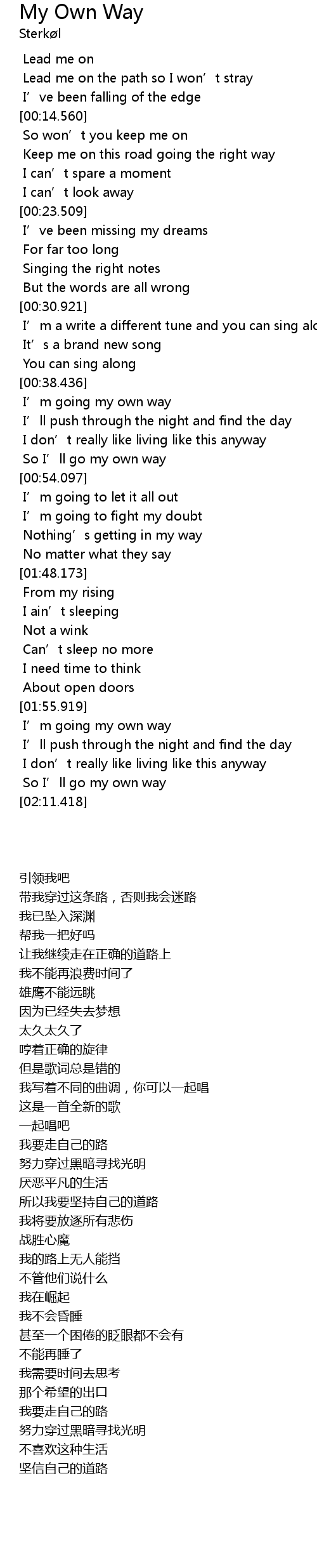 | [00:09.670] | Lead me on the path so I won' t stray |
