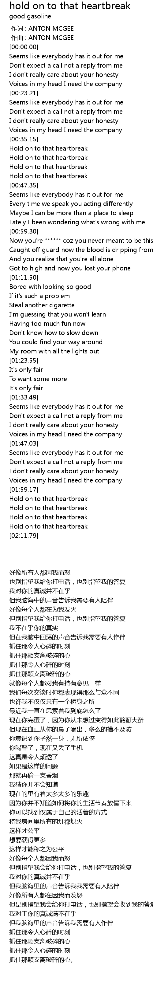 | [00:59.74] | Now you' re coz you never meant to be this stoned |