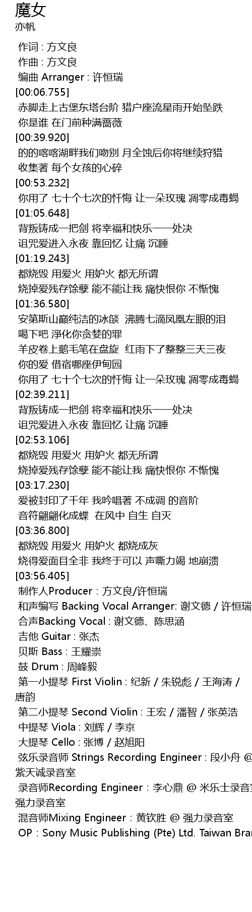 | [03:59.439] | 合声Backing Vocal : 谢文德、陈思涵 |