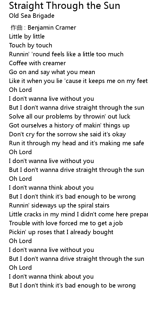 | [01:18.13] | But I don' t wanna drive straight through the sun |