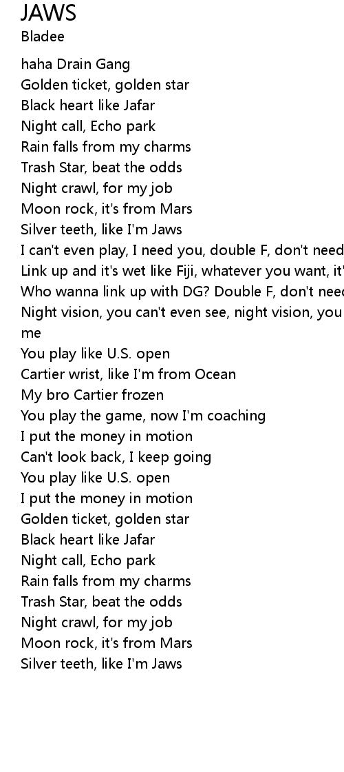 | [01:40.52] | Silver teeth, like I'm Jaws |