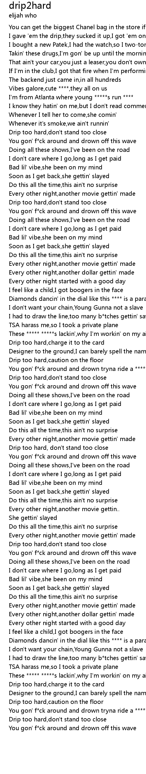 [02:48.03] You gon' f*ck around and drown tryna ride a ***** wave