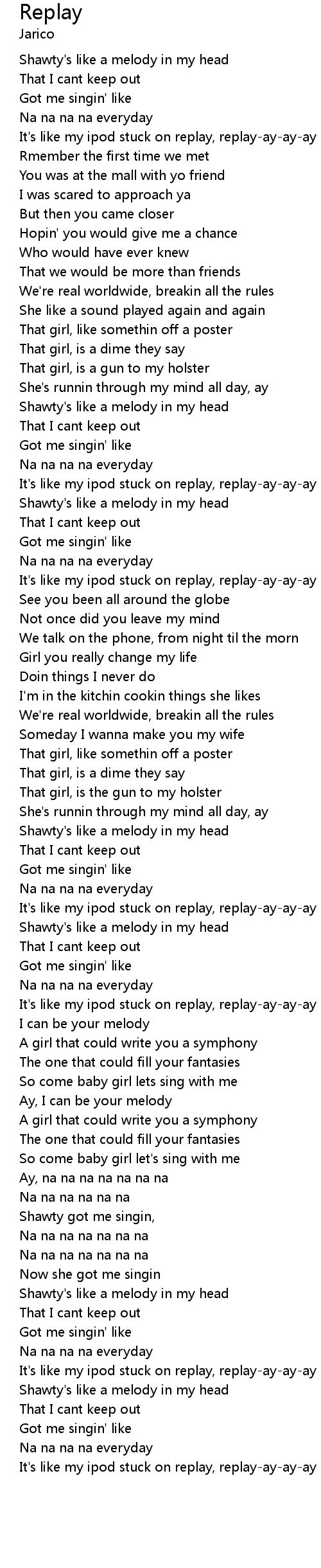 It's like my ipod stuck on replay, replay-ay-ay-ay |