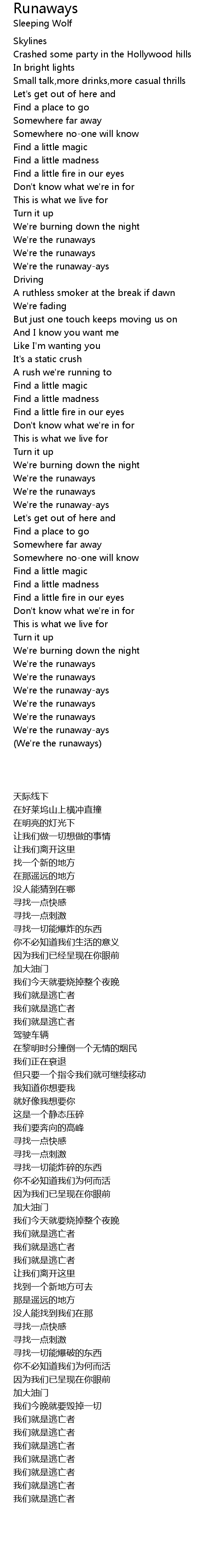Runaways Lyrics