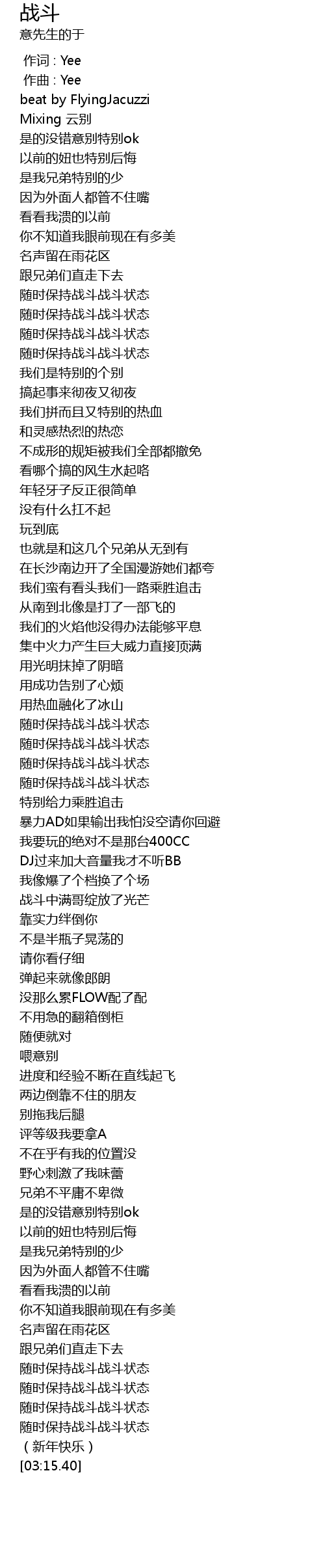 | [02:30.51] | suí shí bǎo chí zhàn dòu zhàn dòu zhuàng tài |