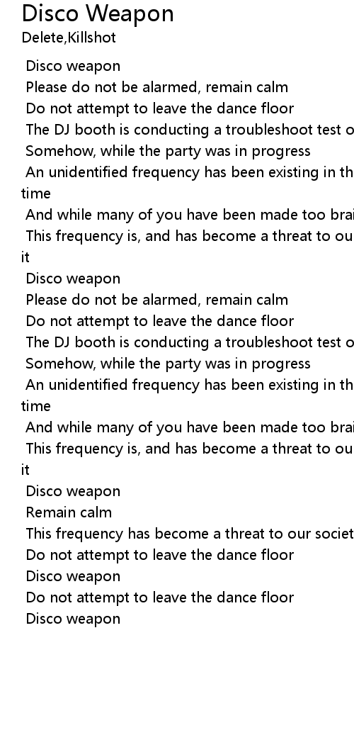 | [00:11.522] | Disco weapon |