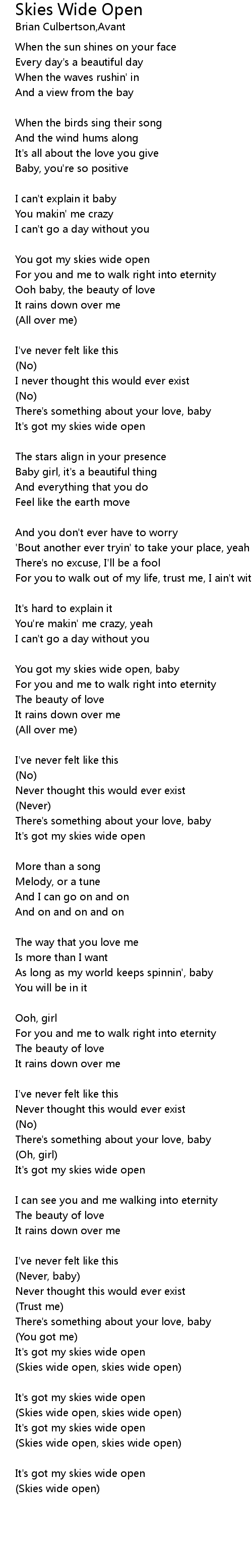 | You got my skies wide open | |