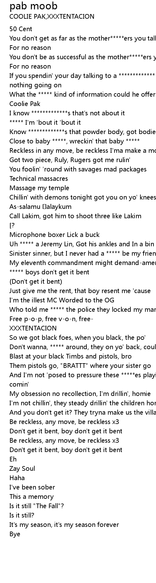 | [01:50.80] | Be reckless, any move, be reckless x3 |