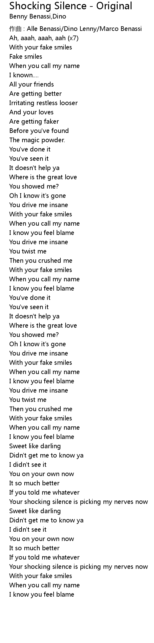 | Song | Shocking Silence - Original |