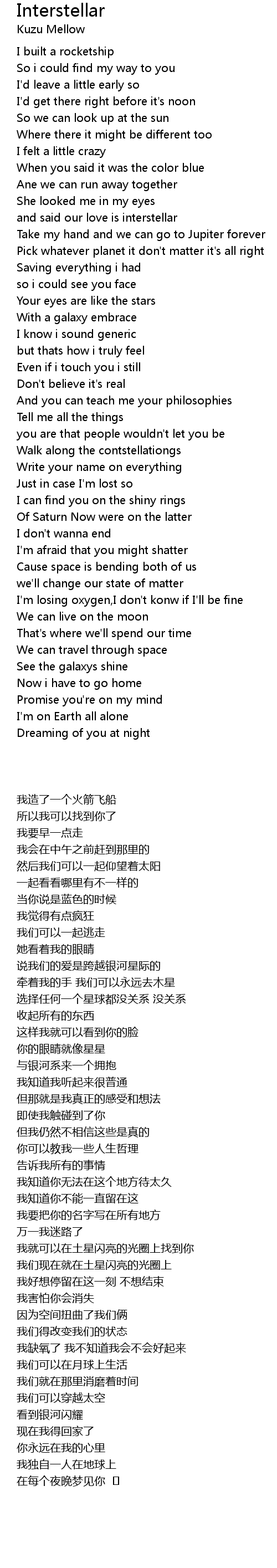 Interstellar Lyrics