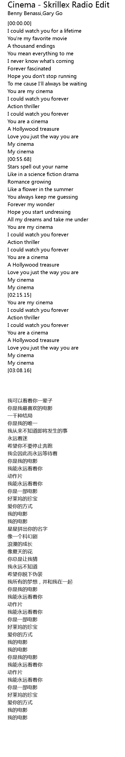 | [02:54.87] | You are a cinema |