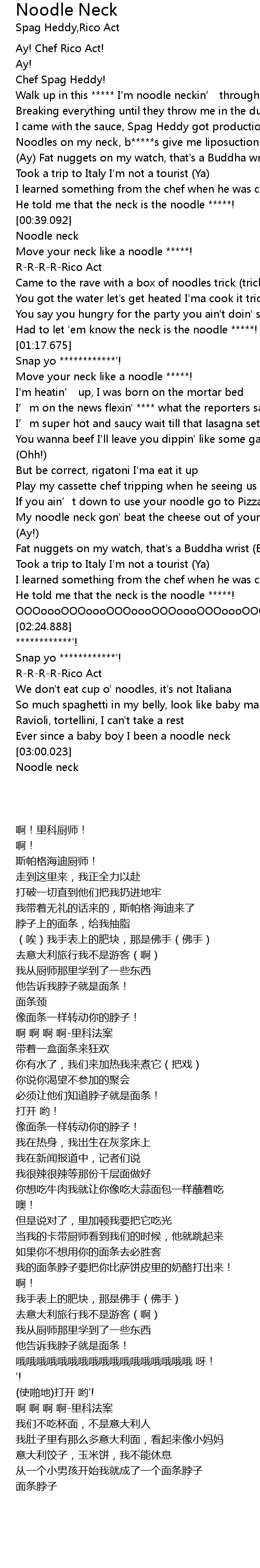 | [02:56.888] | Ever since a baby boy I been a noodle neck |