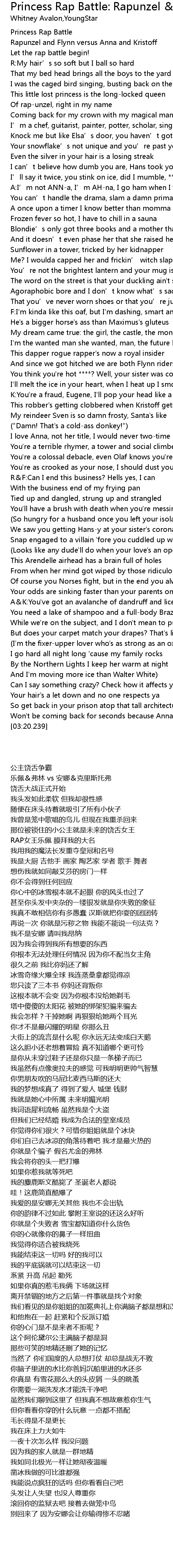 | Song | Princess Rap Battle: Rapunzel & Flynn vs. Anna & Kristoff |