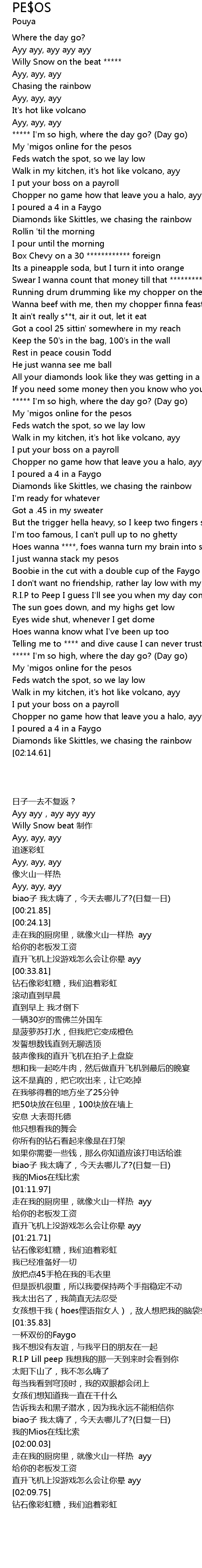 | [01:57.80] | My 'migos online for the pesos |