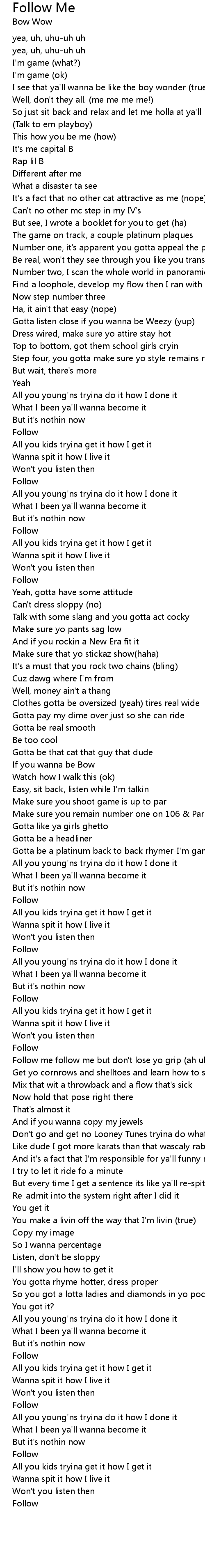 | Gotta listen close if you wanna be Weezy (yup) | |