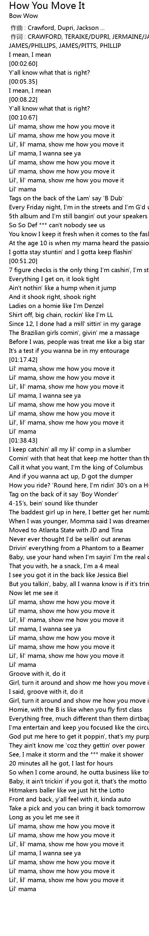 | [01:34.74] | Lil', lil' mama, show me how you move it |