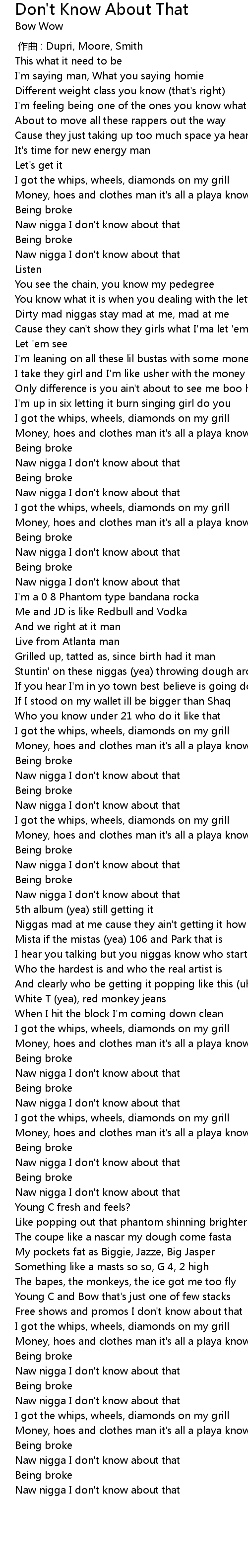 | [02:52.010] | Naw nigga I don' t know about that |