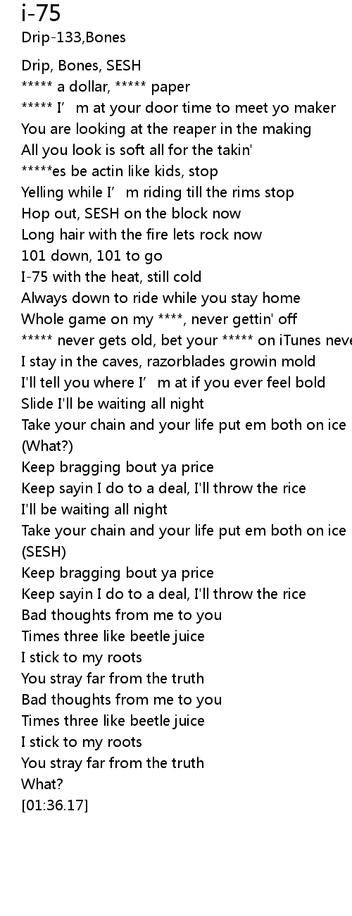 | [00:48.88] | I-75 with the heat, still cold |