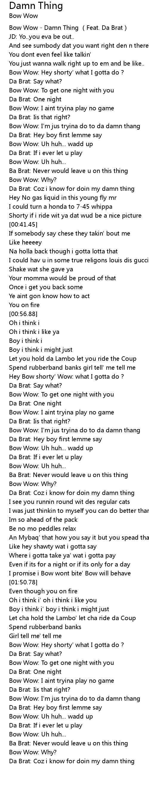 | [00:00.66] | Bow Wow - Damn Thing (Feat. Da Brat) |