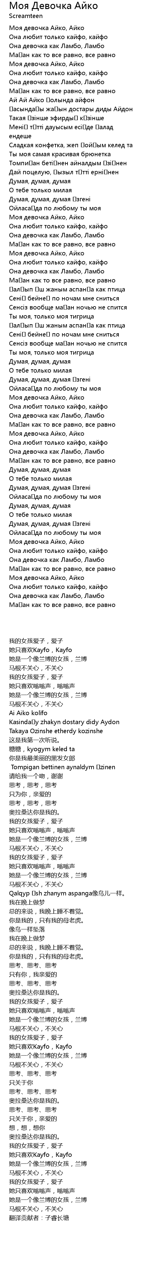 Моя Девочка Aйко A Lyrics
