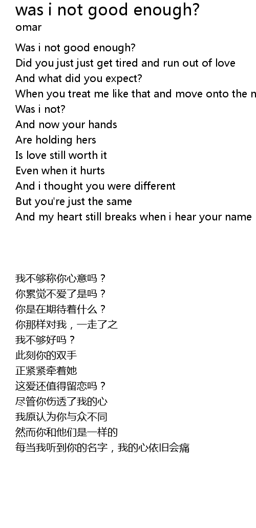 | [01:17.80] | And my heart still breaks when i hear your name |