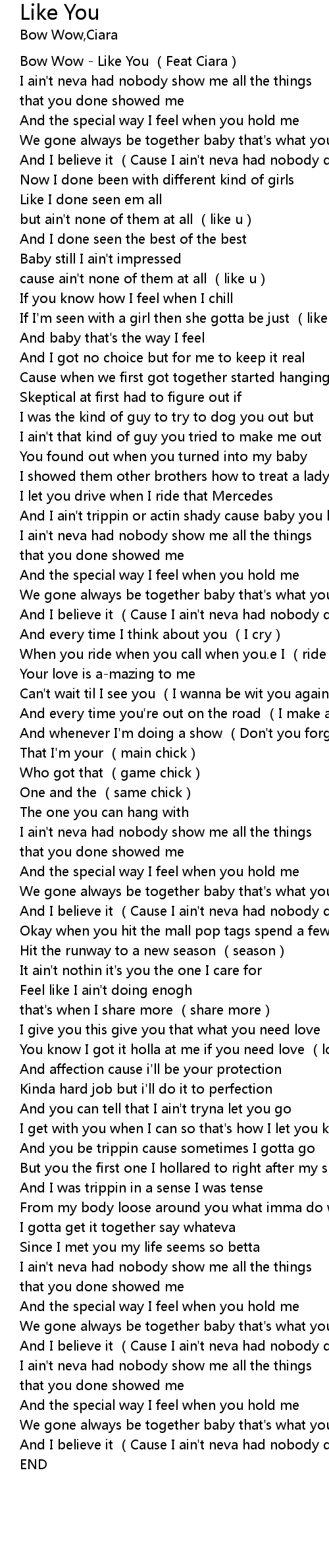 | [00:00.00] | Bow Wow Like You Feat Ciara |