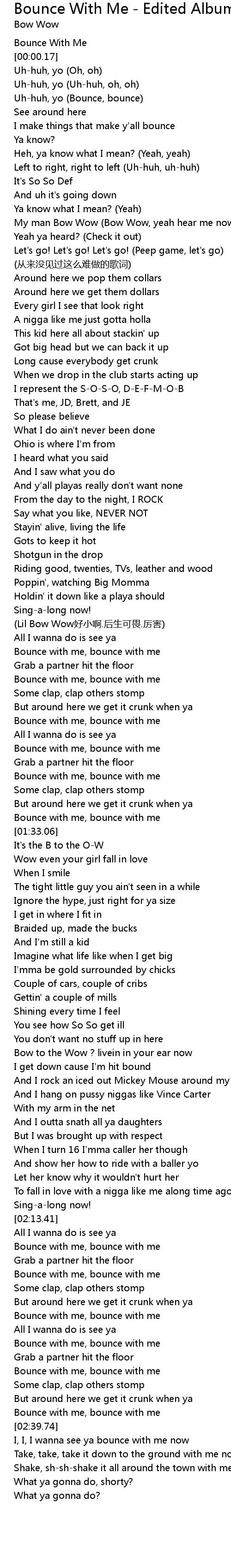 | [00:20.21] | My man Bow Wow (Bow Wow, yeah hear me now) |