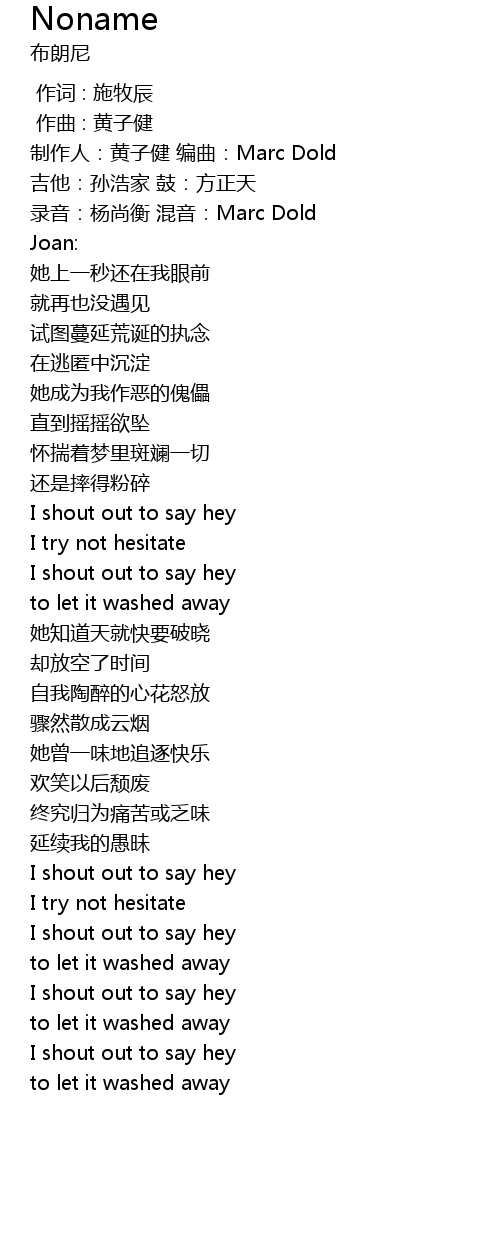| [00:14.07] | 制作人:黄子健 编曲:Marc Dold |