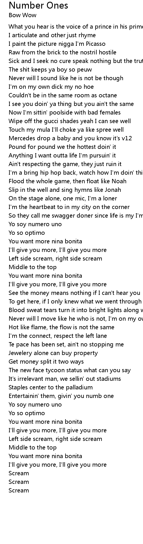 Number Ones Lyrics