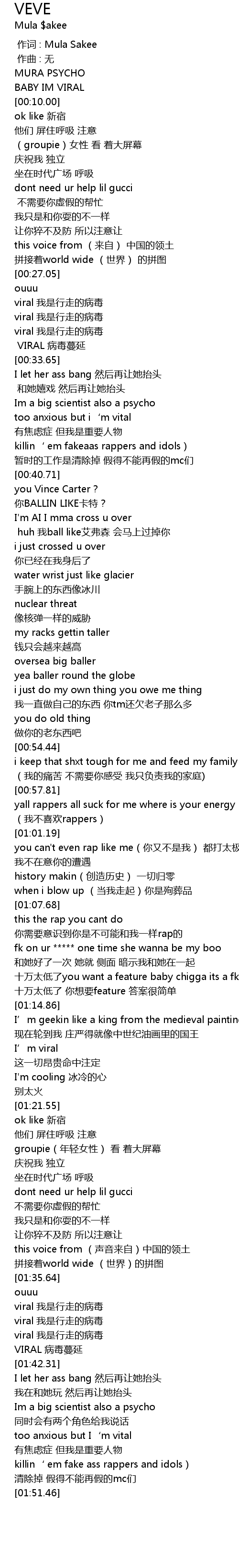 | [01:40.81] | VIRAL bìng dú màn yán |
