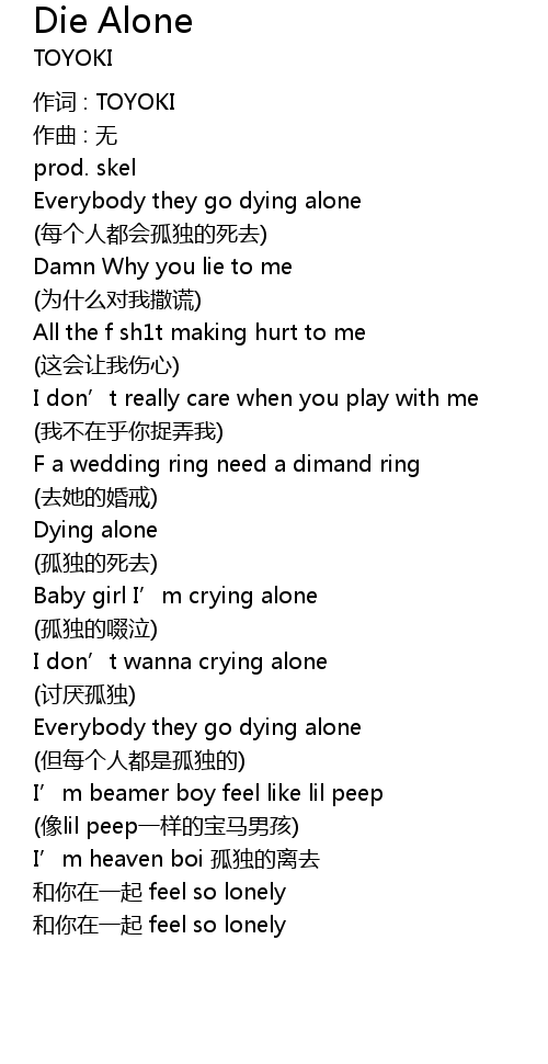 | Everybody they go dying alone | |