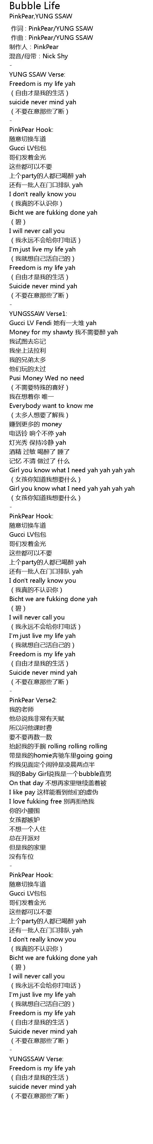 | [00:13.886] | YUNG SSAW Verse: |