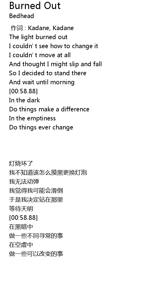 | [00:16.56] | The light burned out |