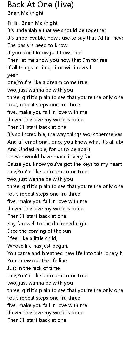 | Song | Back At One (Live) |