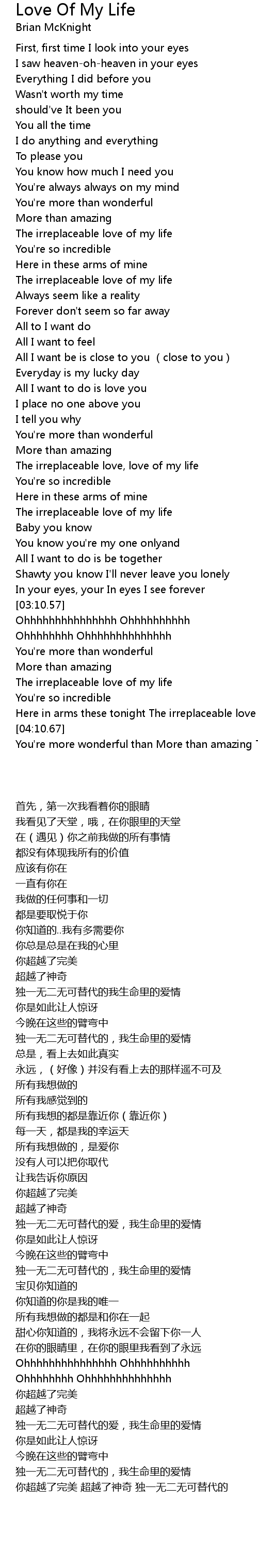 | [04:01.07] | Here in arms these tonight The irreplaceable love of my life |