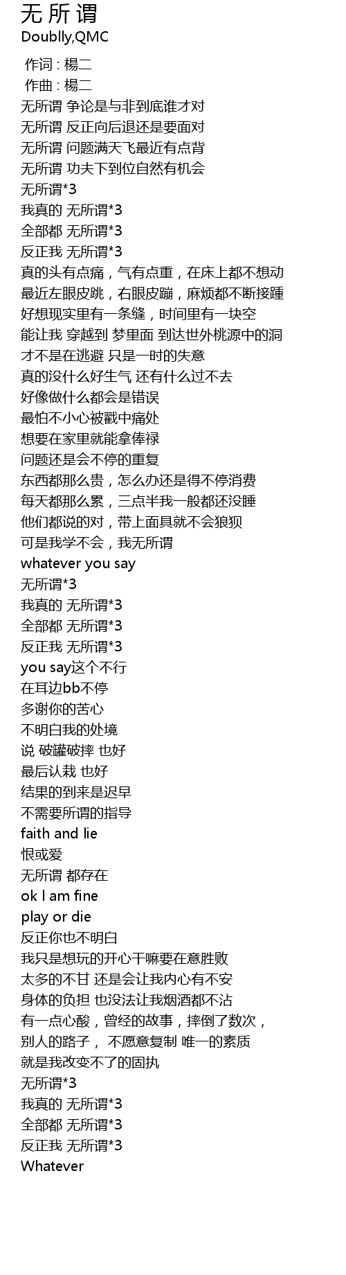 | [02:03.451] | 无所谓*3 |