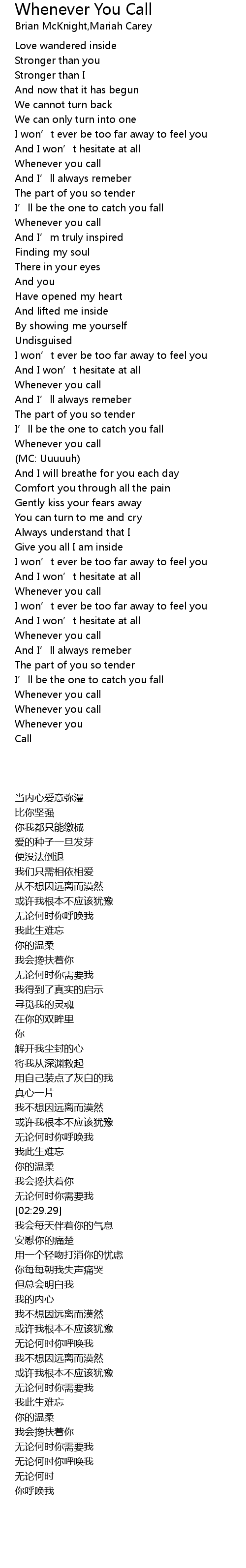 | [01:15.39] | Whenever you call |