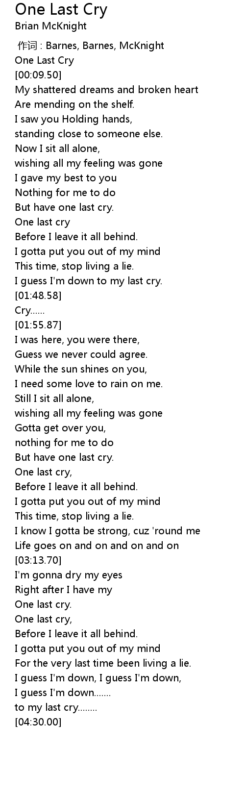 | [00:00.00] | One Last Cry |