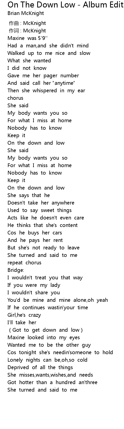 | [02:29.42] | Cos tonight she' s needin' someone to hold |