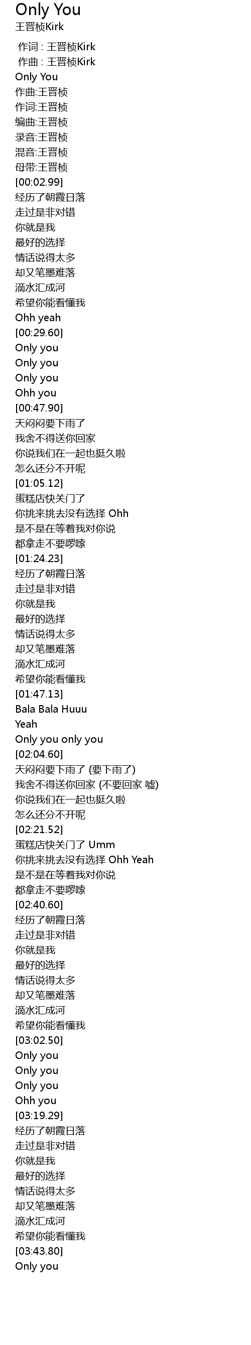 | [00:00.000] | 作词 : 王晋桢Kirk |