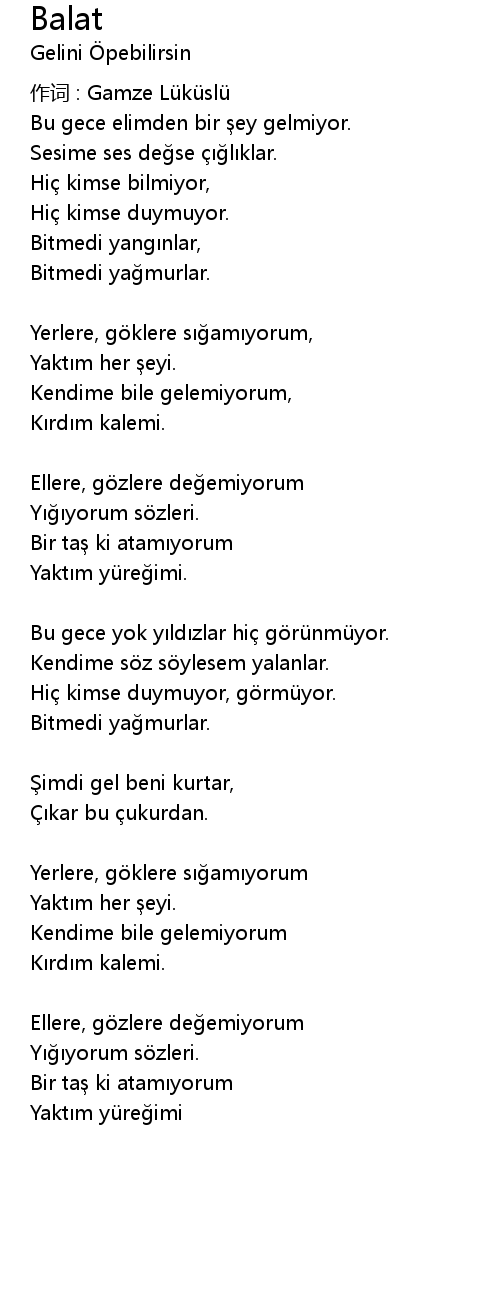 | 作词 : Gamze Lüküslü | |