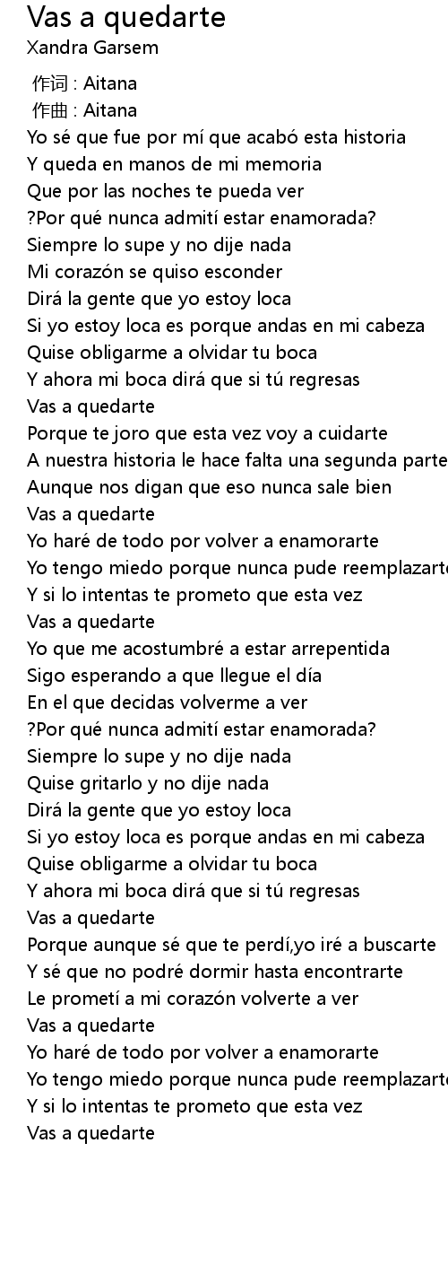 | Song | Vas a quedarte |