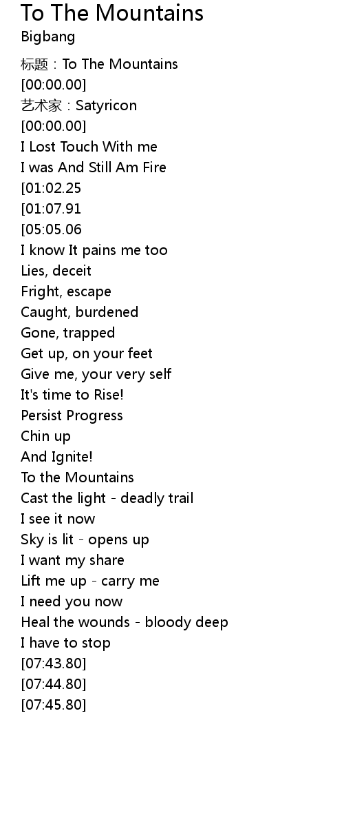 | [04:24.81] | To the Mountains |