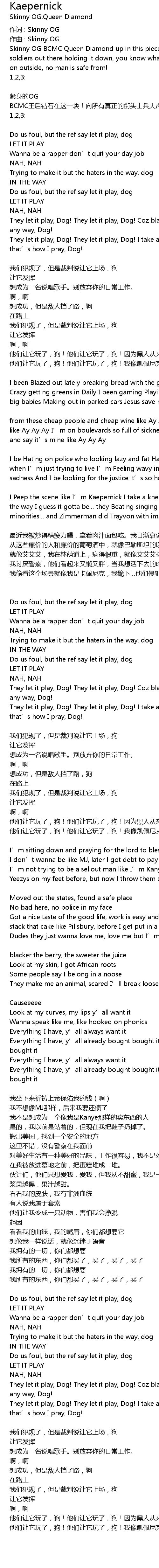 | They let it play, Dog! They let it play, Dog! I take a knee like Kaepernick, that' s how I pray, Dog! | |