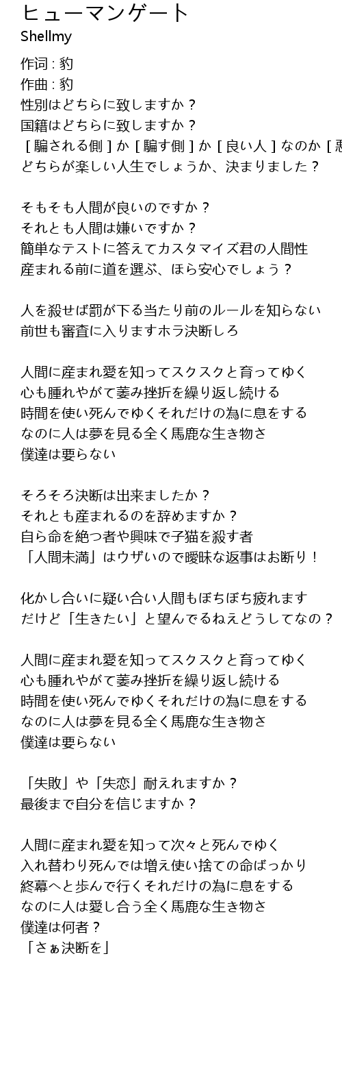 | 人間に産まれ愛を知って次々と死んでゆく | |