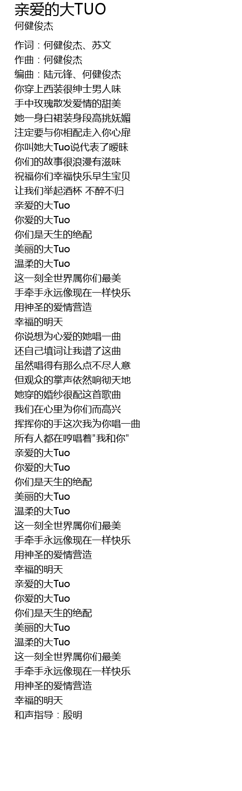 | [02:56.08] | 你爱的大Tuo |