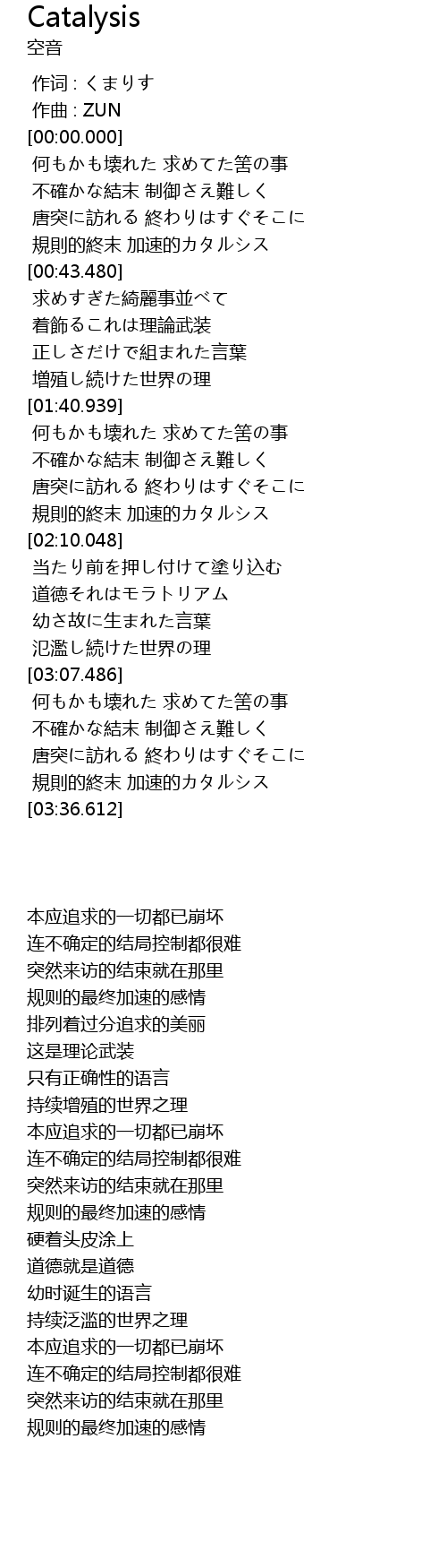 | [00:36.144] | 規則的終末 加速的カタルシス |