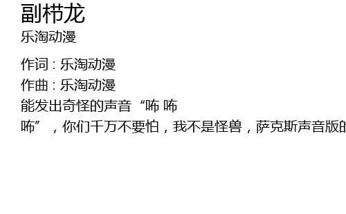 | 能发出奇怪的声音“咘 咘 咘”,你们千万不要怕,我不是怪兽,萨克斯声音版的恐龙声音,副栉龙我是副栉龙,我头上的冠子能变得通红。 |
